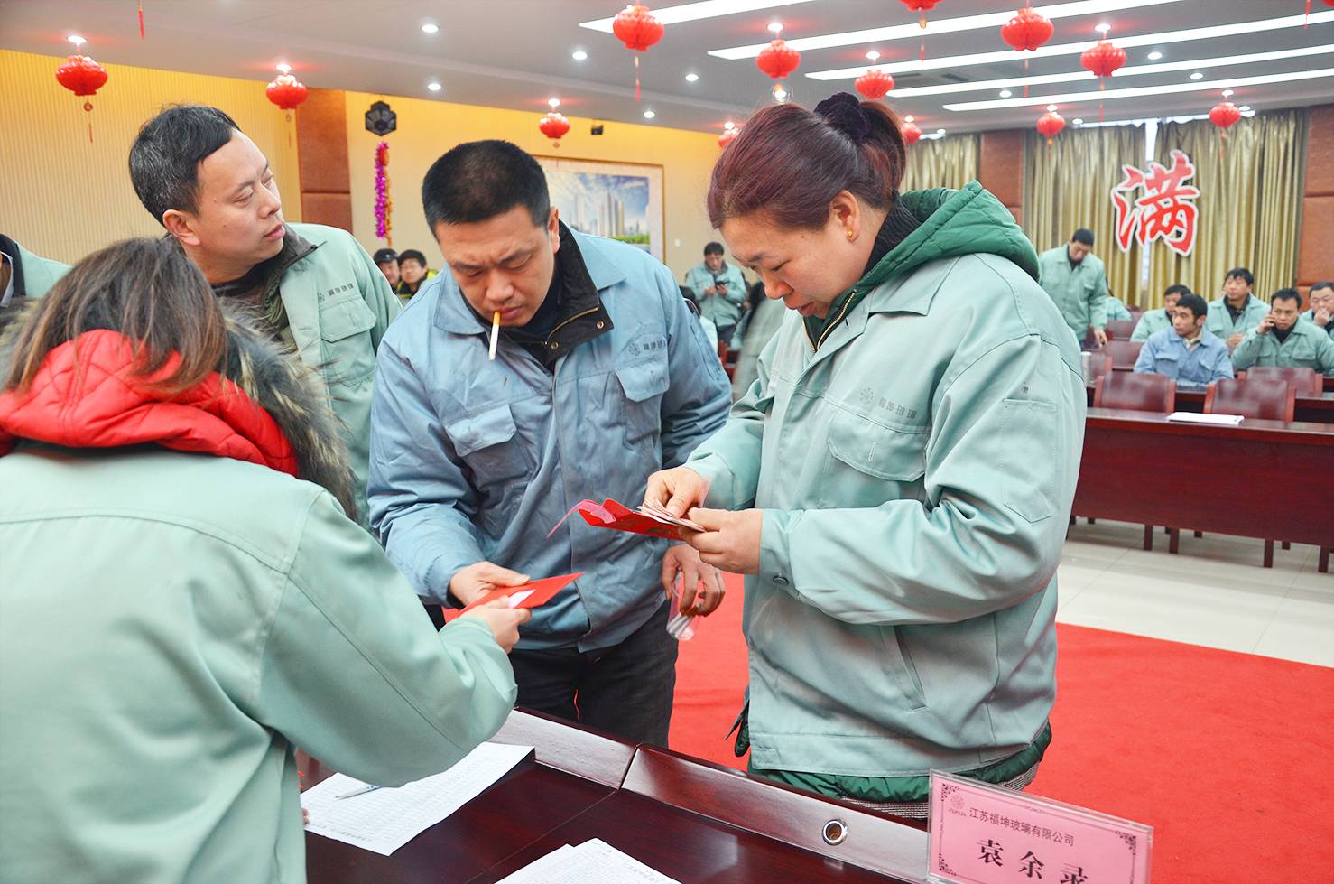 红色寓意着喜庆、吉祥与祝福。福坤公司为了让员工度过一个欢乐祥和的新年,精心准备了福坤红色大礼盒,盒内装着火红的福贴,精致的挂历,还有大豆油和各种干货……同时为了感恩员工一年来的辛苦付出和不离不弃,公司更是准备了一叠叠的现金红包。员工们欢喜地拆开红包,数着一张张年功奖金和安 全奖金个个喜笑颜开。 福坤的年味儿是“暖”的