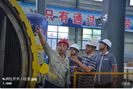 九月十四日,泰兴市安监局和泰兴市场监管局特监科工作人员分别来我司进行检查和特种设备监督检查。图为设备部赵荣柏向锅检所监督人员介绍我司高压釜安保装置。 二、践行社会责任
