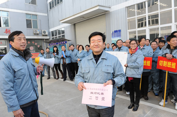 福坤玻璃:职工大联欢 共庆元旦佳节 (泰兴电视台2013-01-02)为丰富职工假日文化生活,1月1日下午,江苏福坤玻璃有限公司举办庆元旦职工大联欢系列活动,多才多艺的企业职工拿出看家本领,你刚唱罢我登台,独唱、合唱、舞蹈、小品、京剧一个个精彩的节目,让大家在欢乐祥和的气氛中度过元旦佳节。