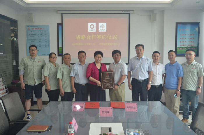 2020年7月6日,江苏福坤玻璃有限公司(以下简称福坤玻璃)与凤阳凯盛硅材料有限公司(以下简称凤阳凯盛)在江苏泰兴签署战略合作协议,福坤玻璃董事长、总经理洪爱萍、公司战略发展顾问曹先生、公司技术总监、享受国务院特殊津贴专家郑鸿生、行政副总曾峰、总经理助理高维静率领福坤骨干成员与凤阳凯盛董事长李龙、总经理曹艳平、销售经理郭有利一起见证了签约过程。
