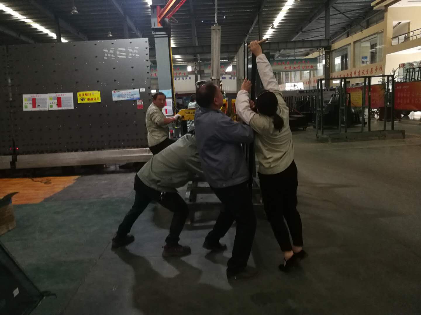 二是动员生产开足马力,加班加点,确保生产任务的完成,确保各种发货节点。为了使生产顺畅进行,切割班组灵活调度,机动排版,确保后道整架交出。钢化班组连续作业,人歇机不歇,每天加班加点,争分夺秒抢产量。夹胶、中空、附框班组都满负荷运转,无论何时走进车间,你都会被热火朝天的生产场面与员工饱满的精神面貌所感染,他们正专注而又忙碌地进行着生产。为了兼顾大、中、小客户要货需求,他们巧妙分配生产额度,批量订单按计划做、门市订单挤时间做、加急订单赶时间做,确保按期交货让客户满意。