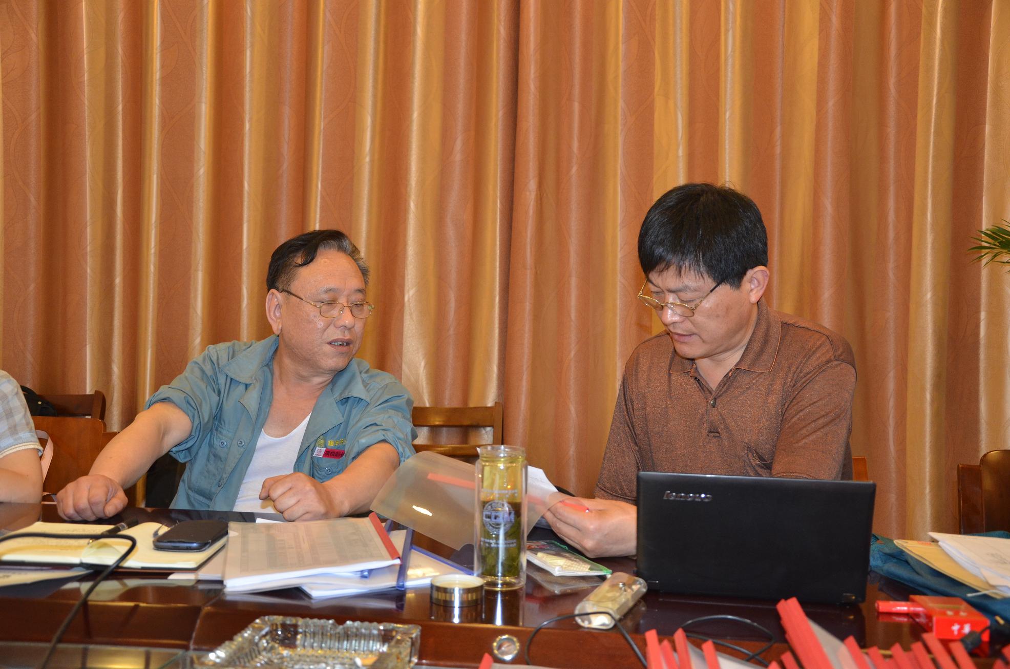 专家组许仁礼组长(右)与我司质检部长严圣涛(左)交流工作