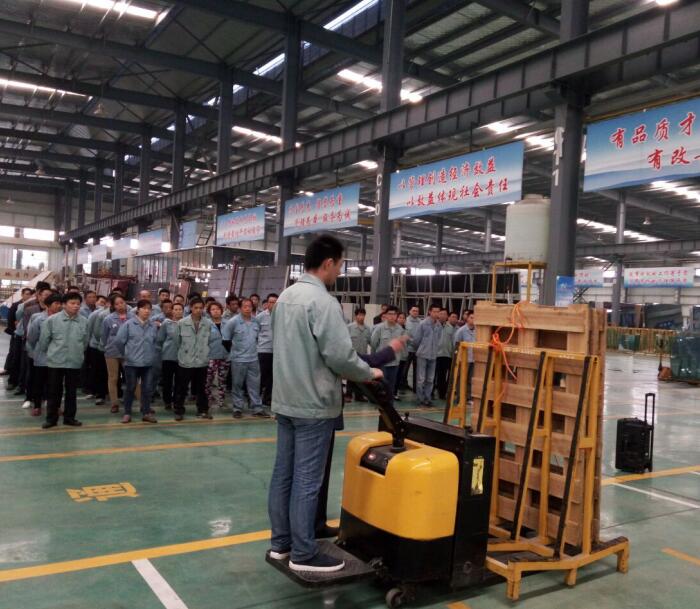 5月19日,23日,切割班组和钢化车间相继因人为因素发生玻璃倒架事故,安 全事故的发生,牵扯着每个福坤人的心!在23日召开的现场安 全教育会议上,公司通过现场演示,措施宣讲,对大家进行了一次现场教育,让每个员工时刻绷紧安 全生产这根弦,对怎样安 全使用电动液压车有了直接的认识,痛定思痛之余,公司意识到:除了用事实教育人,更要用制度完善事,多措并举才能筑牢安 全防护罩。